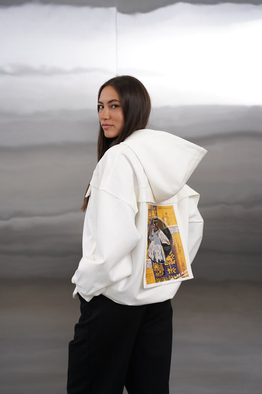 Худі створене у співпраці з мамою загиблого військового Назарія Грінки та українською художницею.