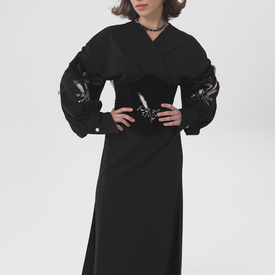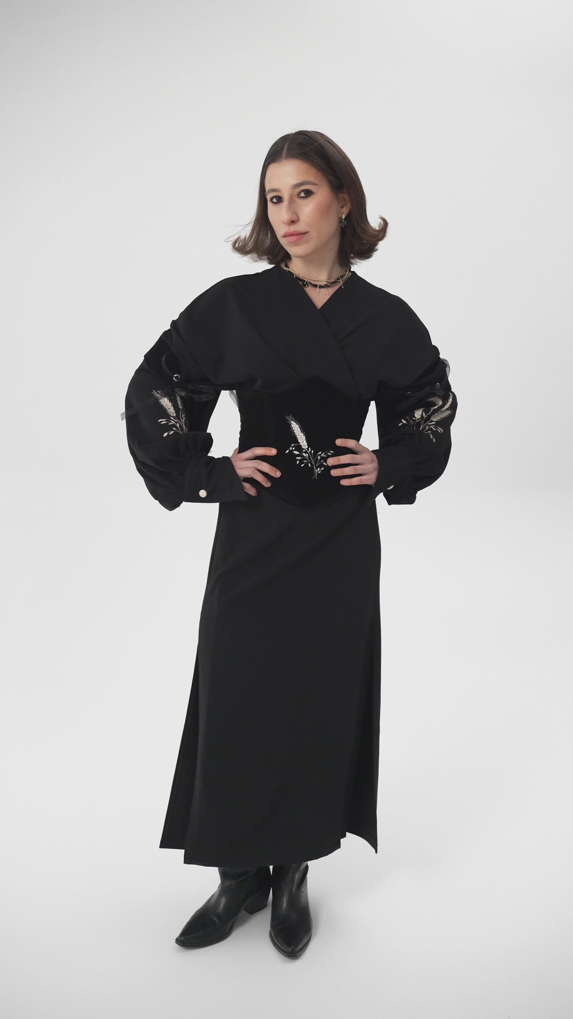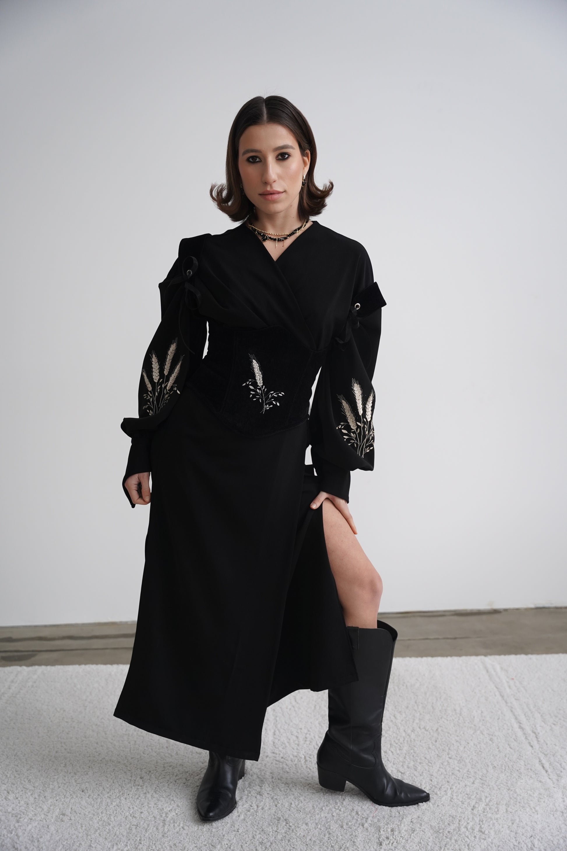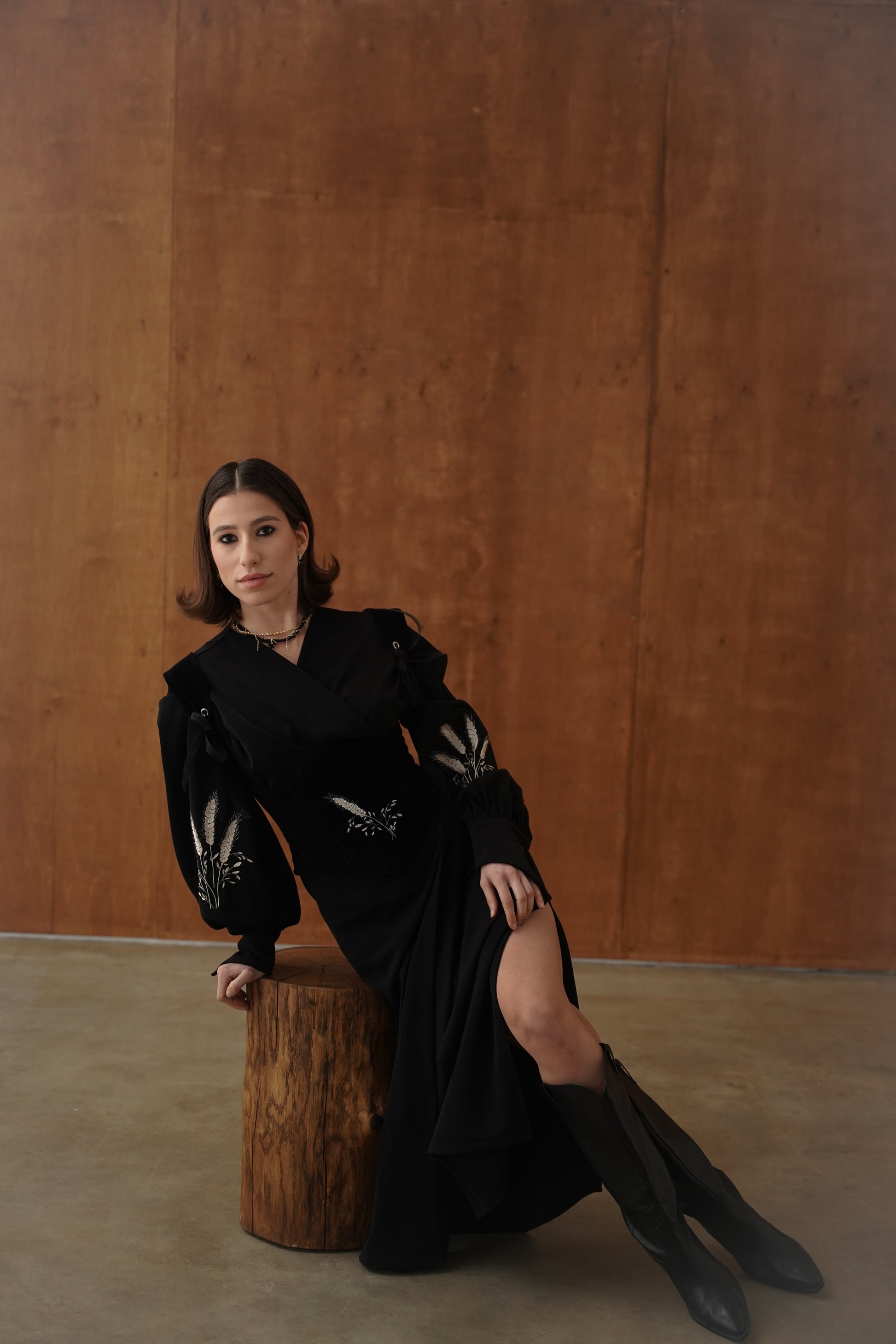 A unique kimono made of natural cotton-based fabric, created for those who appreciate symbolism and handwork. Embroidered spikelets represent the beginning of a new journey, abundance and inner strength. Each element of the decor is complemented by hand-finished stones, which emphasizes the idea of richness and depth of the image.