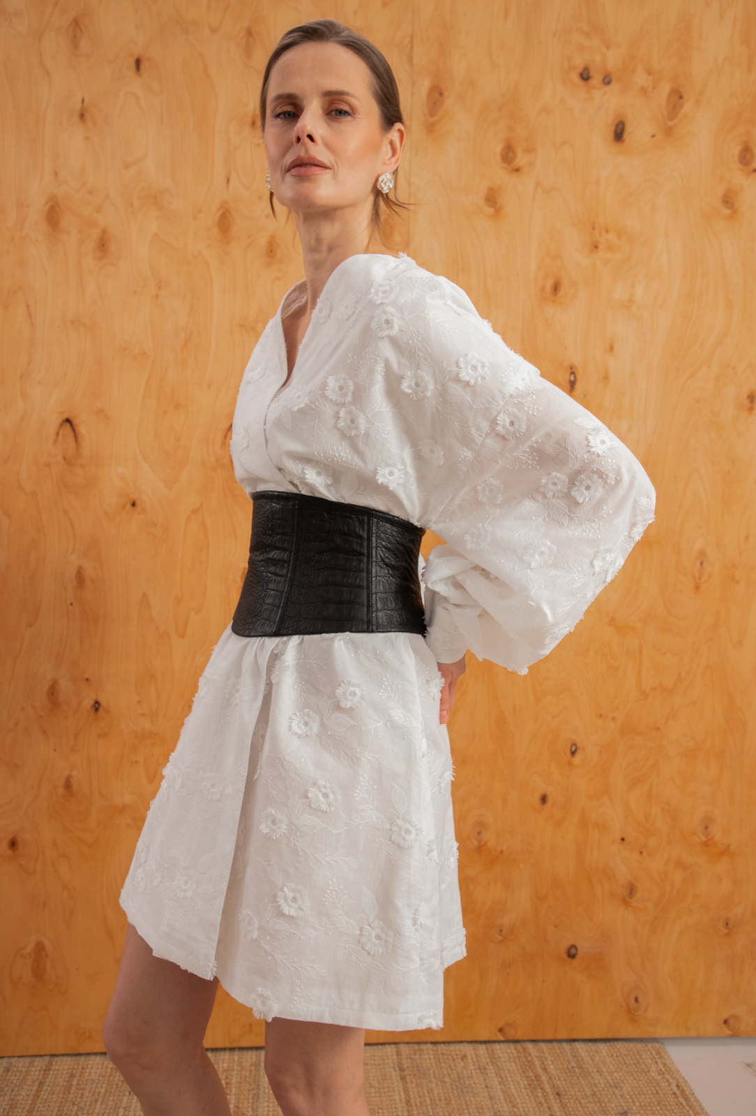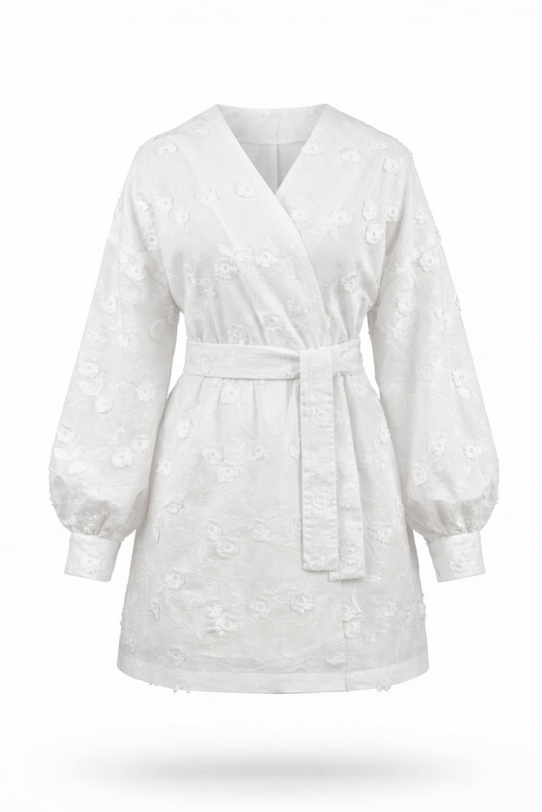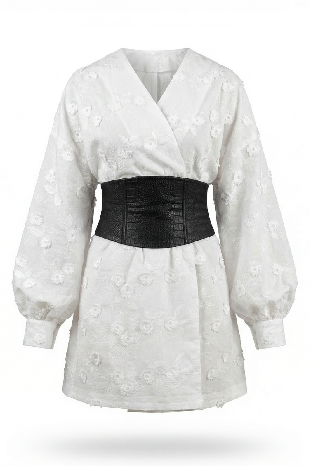 Ця біла сукня — втілення ніжності та літньої легкості. Головним акцентом моделі є об’ємна 3D-вишивка квітами, яка додає образу особливої виразності та невагомості. Завдяки поясу в комплекті, ви можете легко підкреслити талію, створюючи жіночний та гармонійний силует.