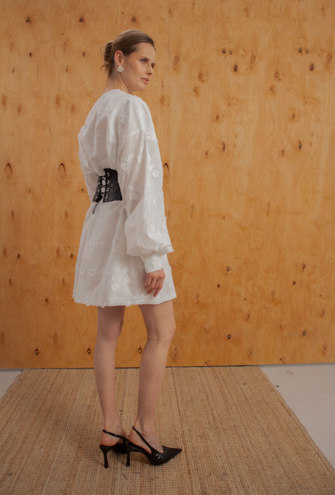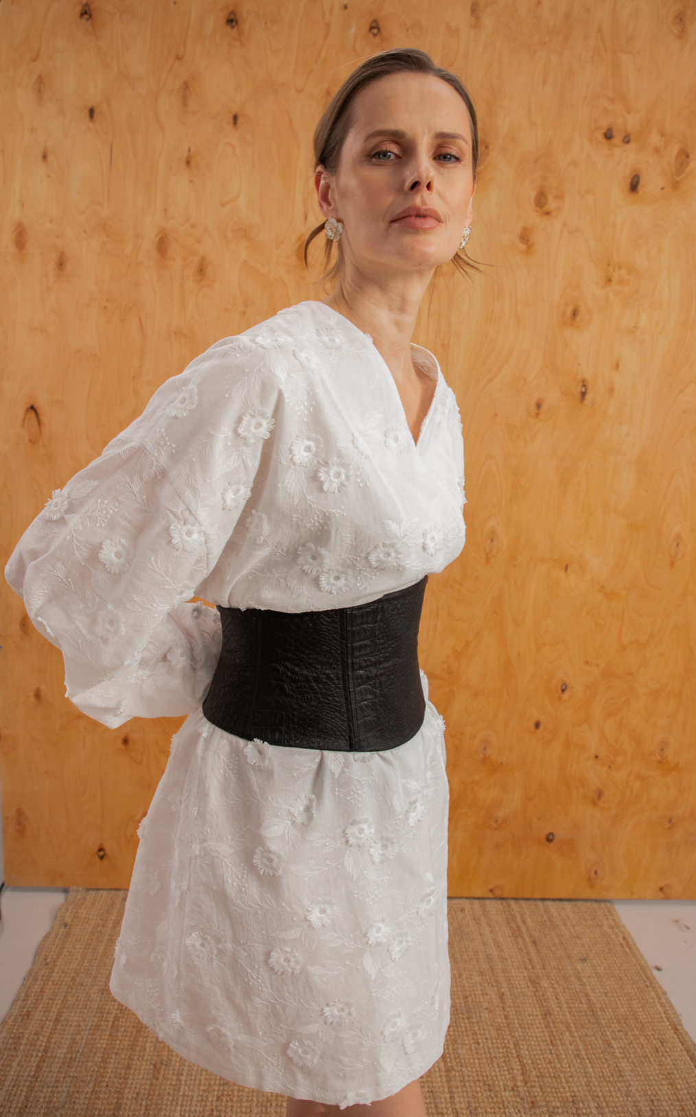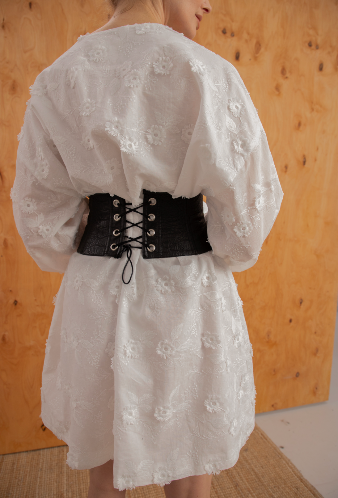 Ця біла сукня — втілення ніжності та літньої легкості. Головним акцентом моделі є об’ємна 3D-вишивка квітами, яка додає образу особливої виразності та невагомості. Завдяки поясу в комплекті, ви можете легко підкреслити талію, створюючи жіночний та гармонійний силует.