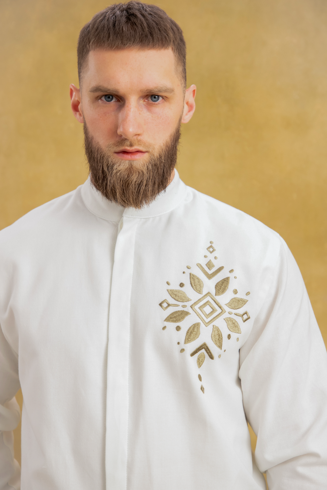 Вишиванка «Синевір» — це гармонійне поєднання стриманого дизайну та глибокого символізму. Характерна, але водночас лаконічна сорочка ідеально пасує до різних стилів, додаючи образу чоловічої сили та впевненості. Вишивка на грудях виступає центральним акцентом, що втілює внутрішній спокій та виваженість.