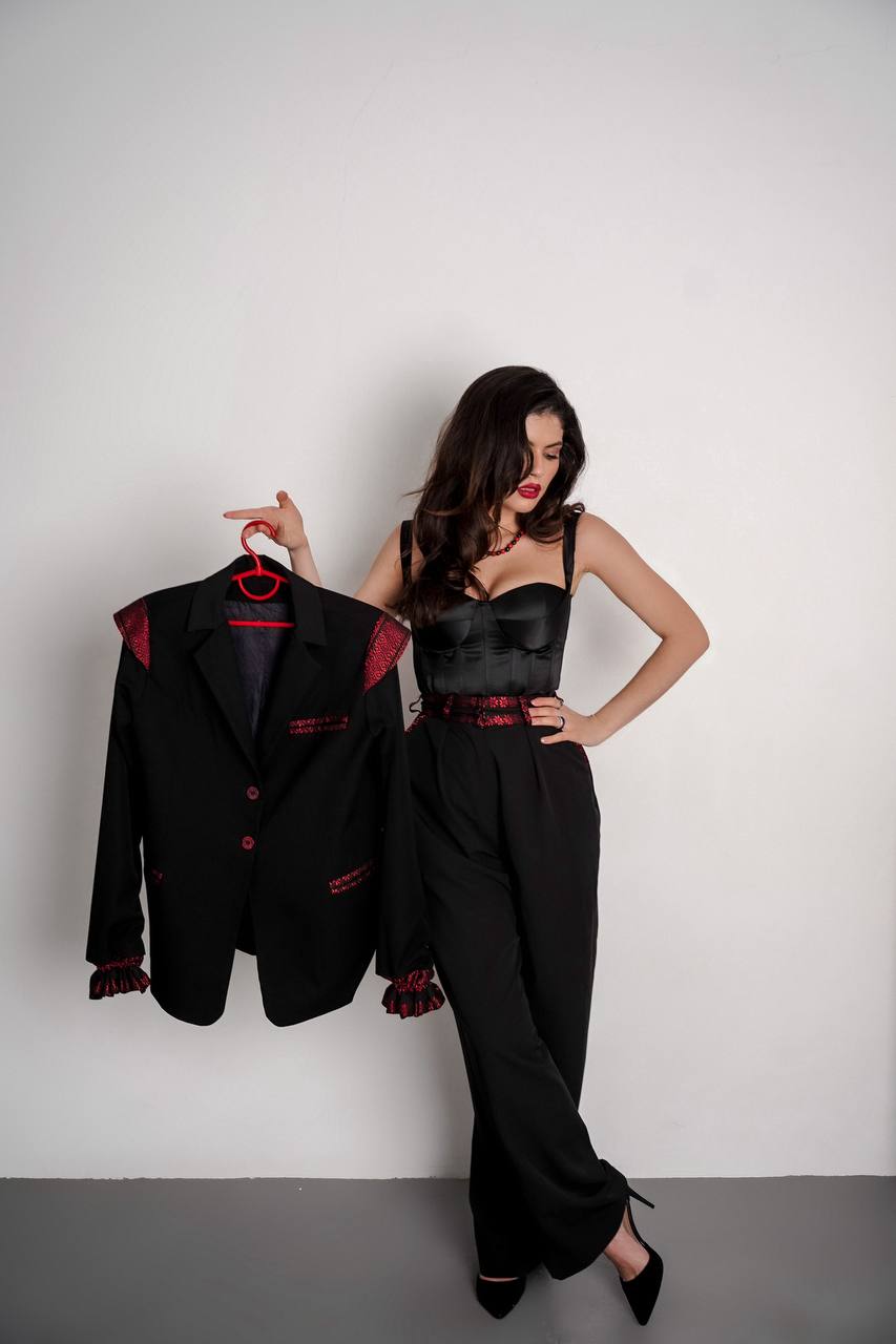 This jacket will become an accent piece in your wardrobe: perfect for formal events, a catwalk appearance or a confident power dressing look. It can be worn both separately and with a suit.