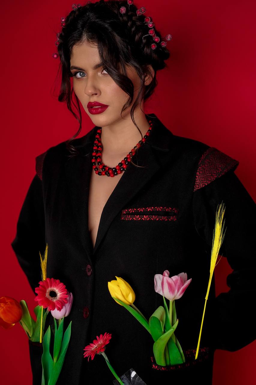 A jacket with a clear silhouette and embroidery on the collar, pockets and cuffs is a modern interpretation of a classic cut. It shapes the shoulders, emphasizes the waistline (especially when paired with trousers) and brings a national mood to the look.