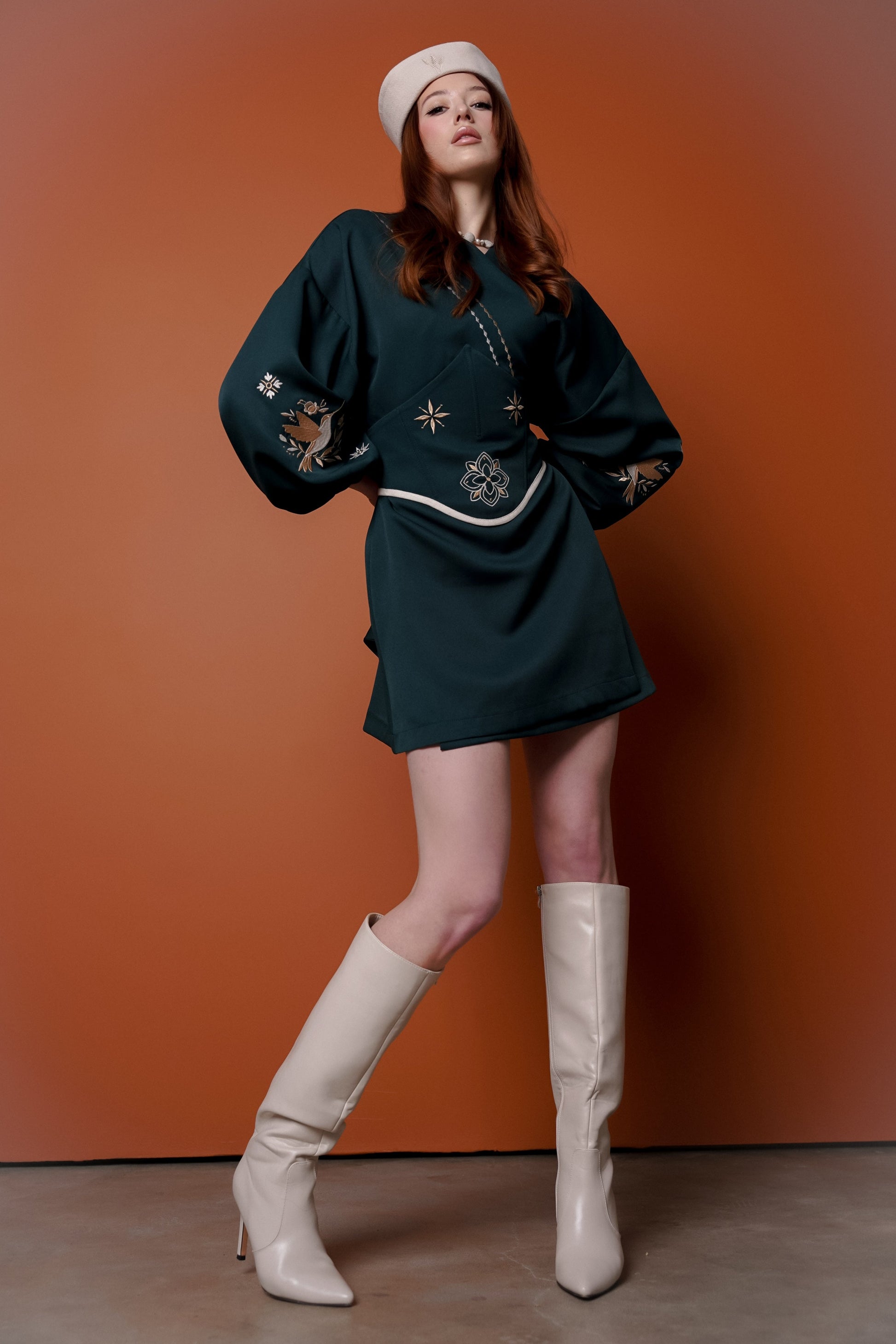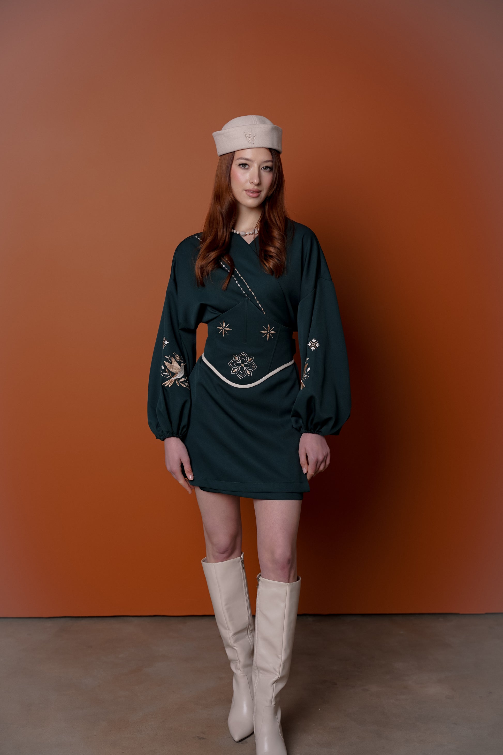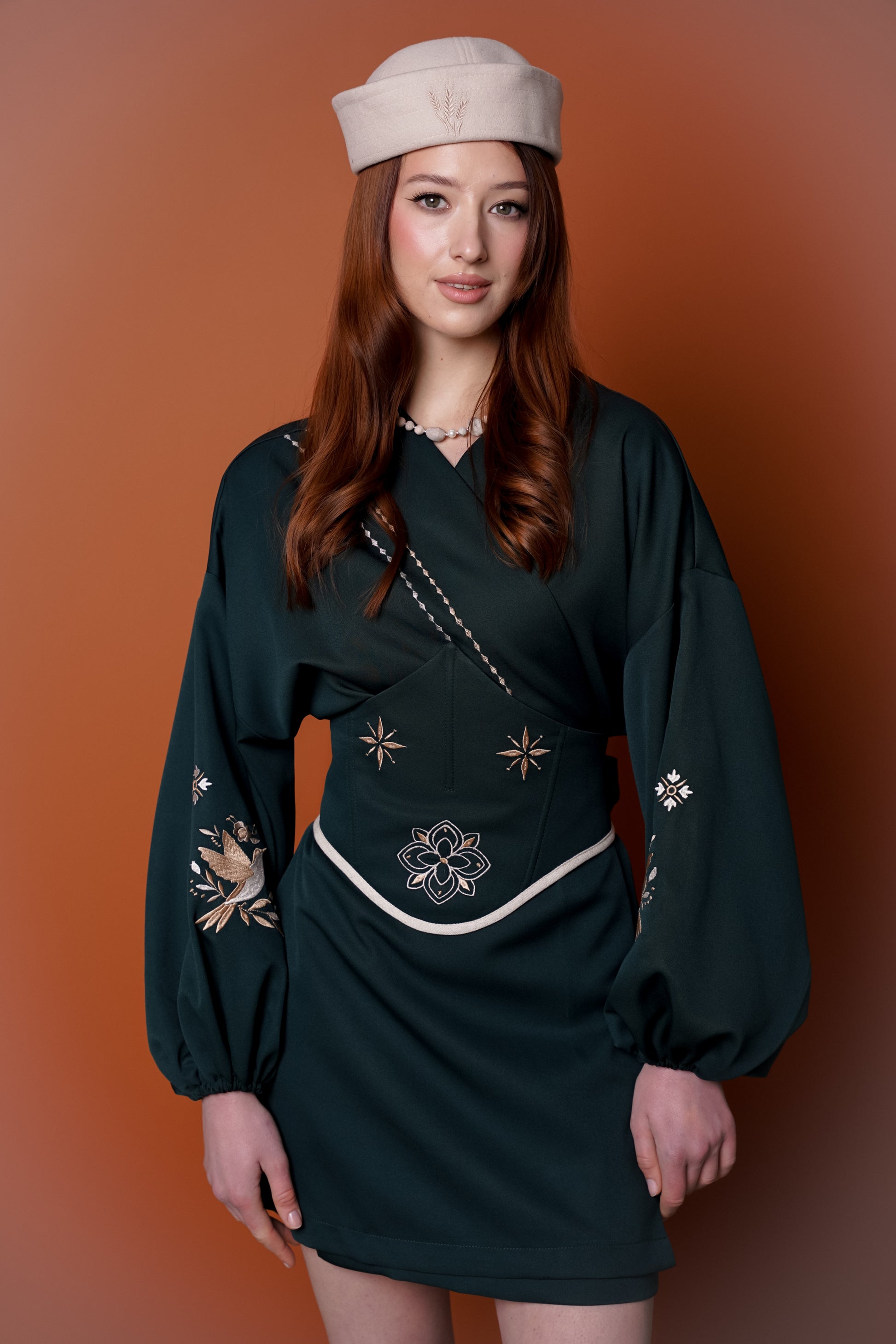 Унікальне жіноче міні кімоно з корсетом - це вдалий мікс етнічного натхнення та сучасного крою. Вишукане оздоблення ручною вишивкою з пташкою й квітковими мотивами на рукавах і корсеті додає особливого шарму. Такий образ точно приверне увагу на святі, фотосесії чи особливій події.