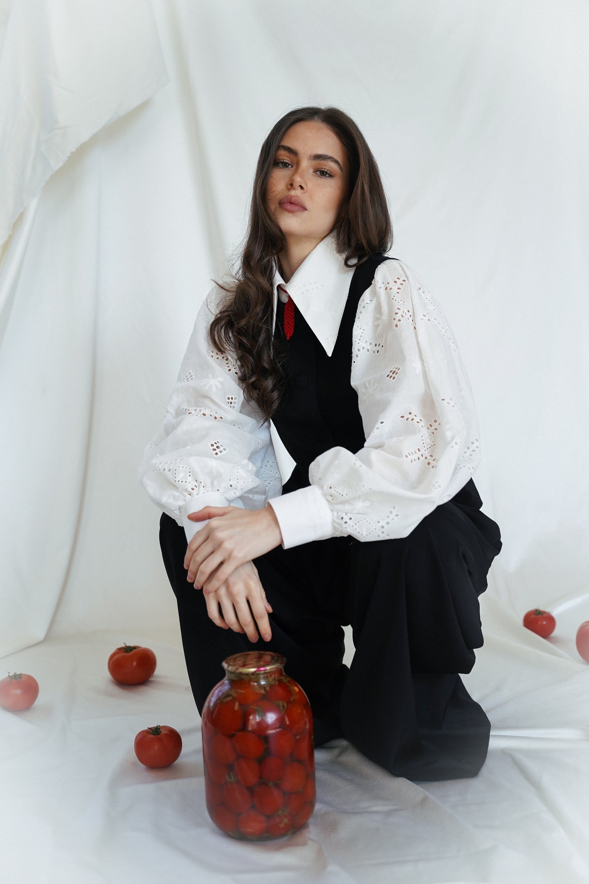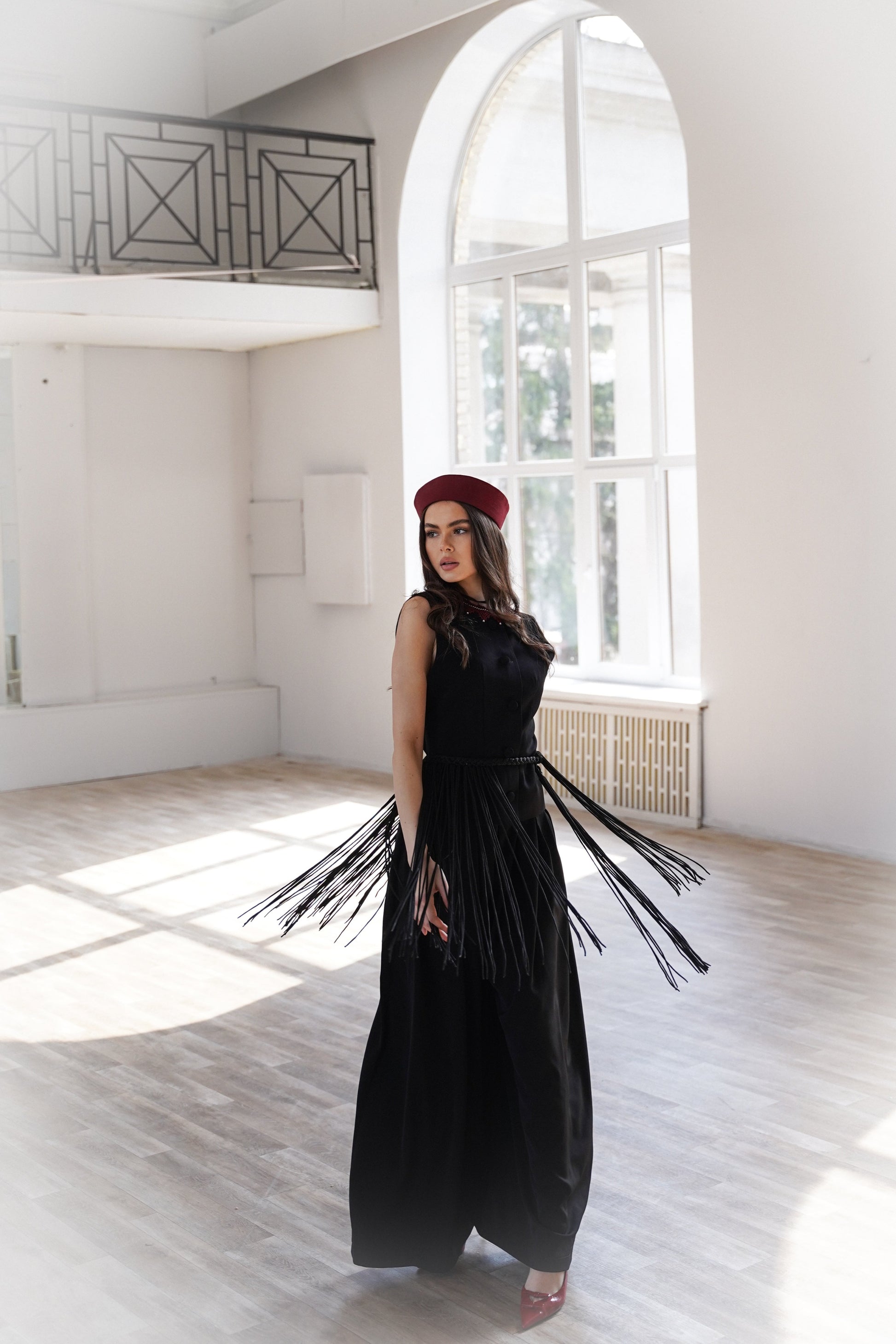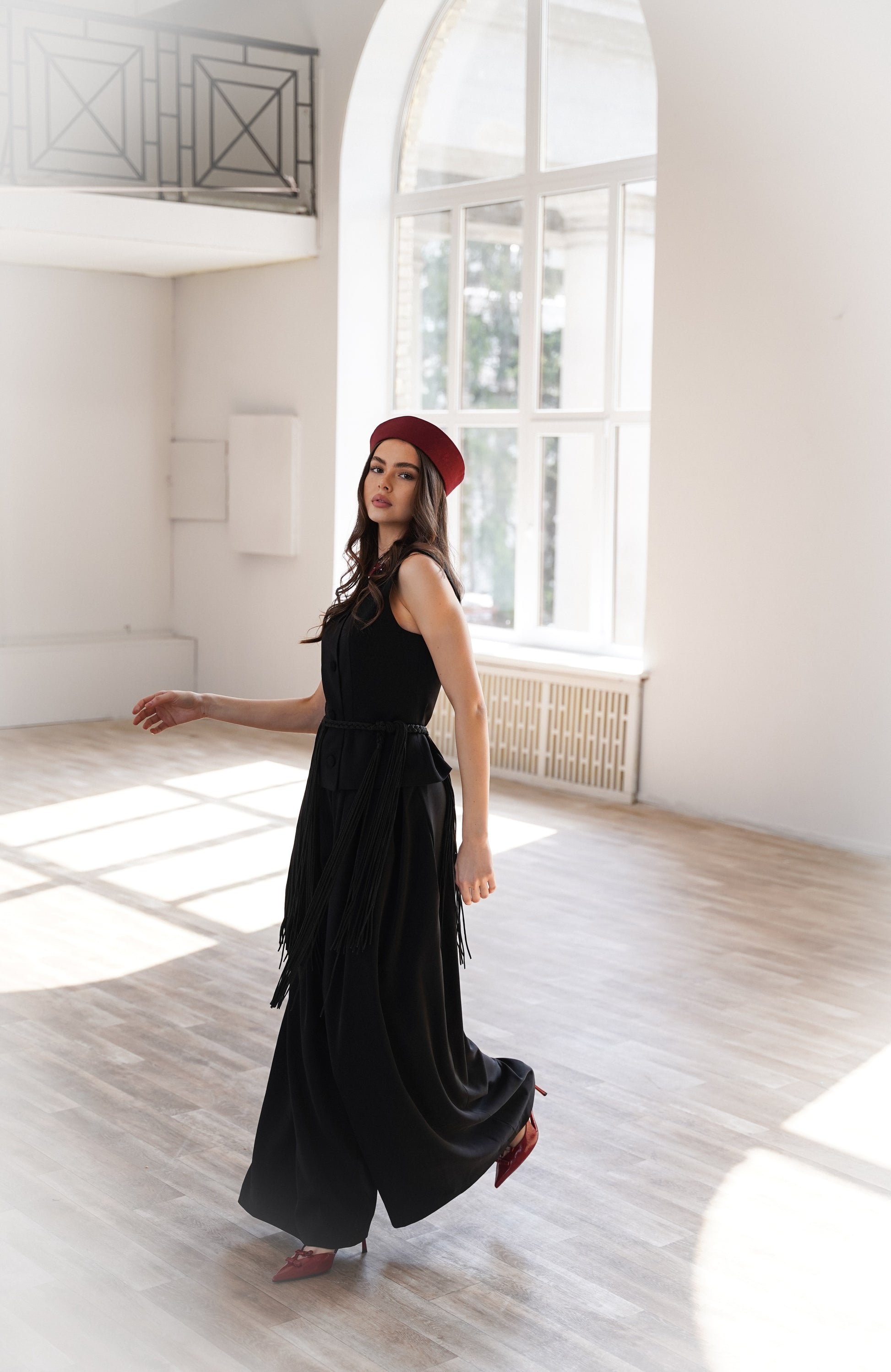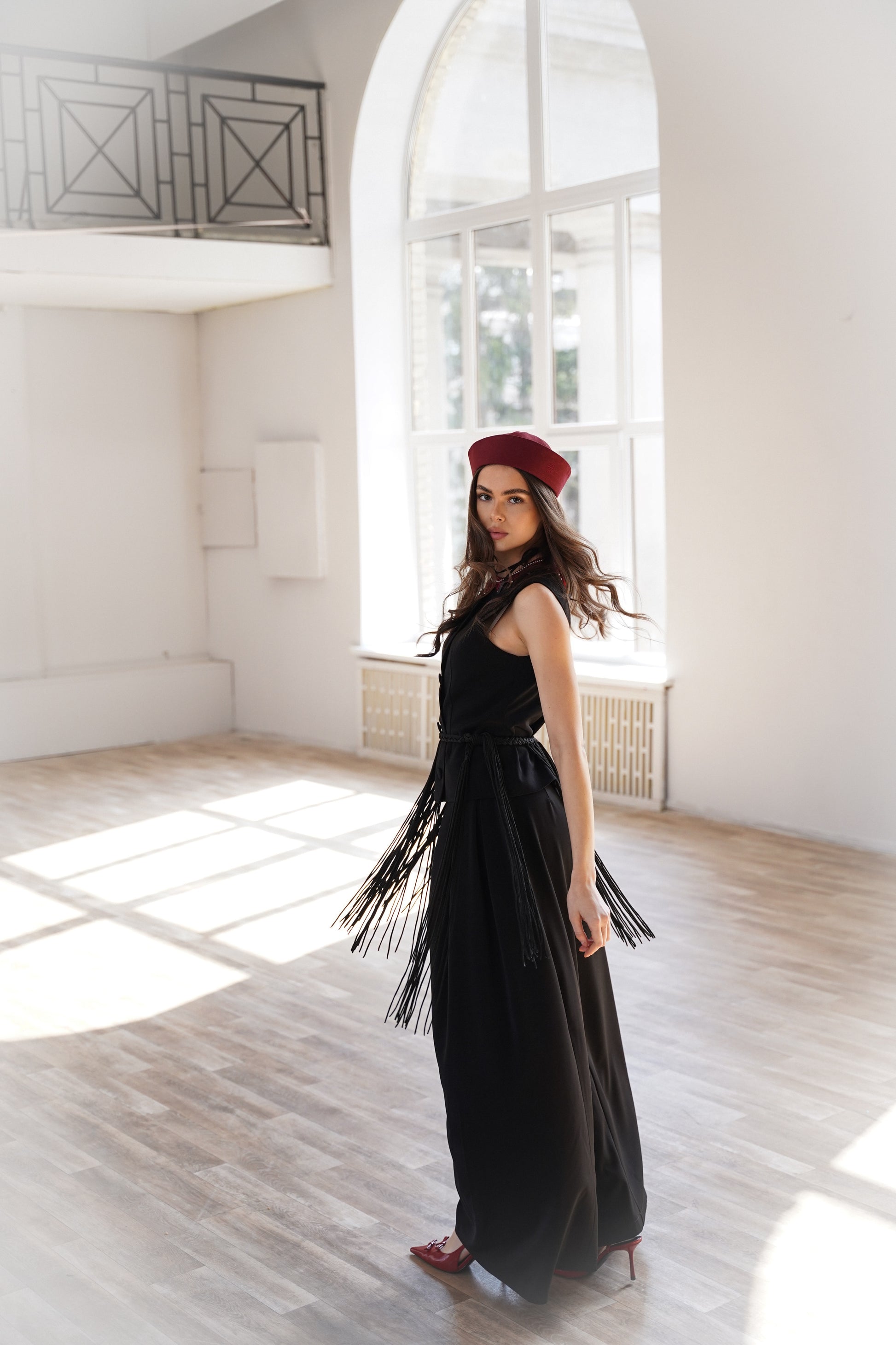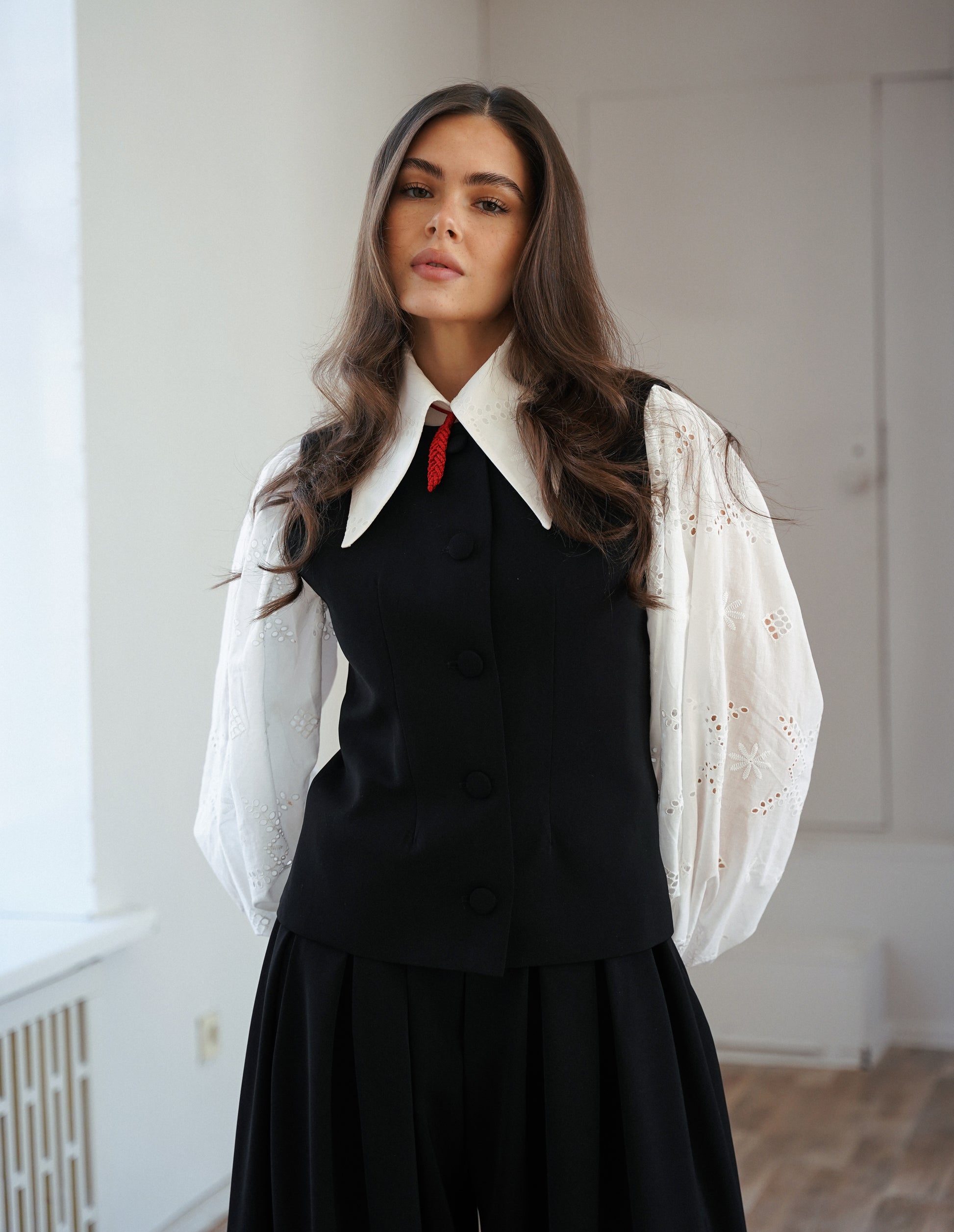 Цей костюм - втілення сучасної української елегантності. Чіткий силует жилетки доповнений трендовими широкими штанами зі стриманими складками, які додають об'єму та шарму. Комплект ідеально пасує для офіційних виходів, презентацій або стильного повсякденного образу. Лаконічний крій, монохромність і гра на контрастах роблять образ влучно витриманим.