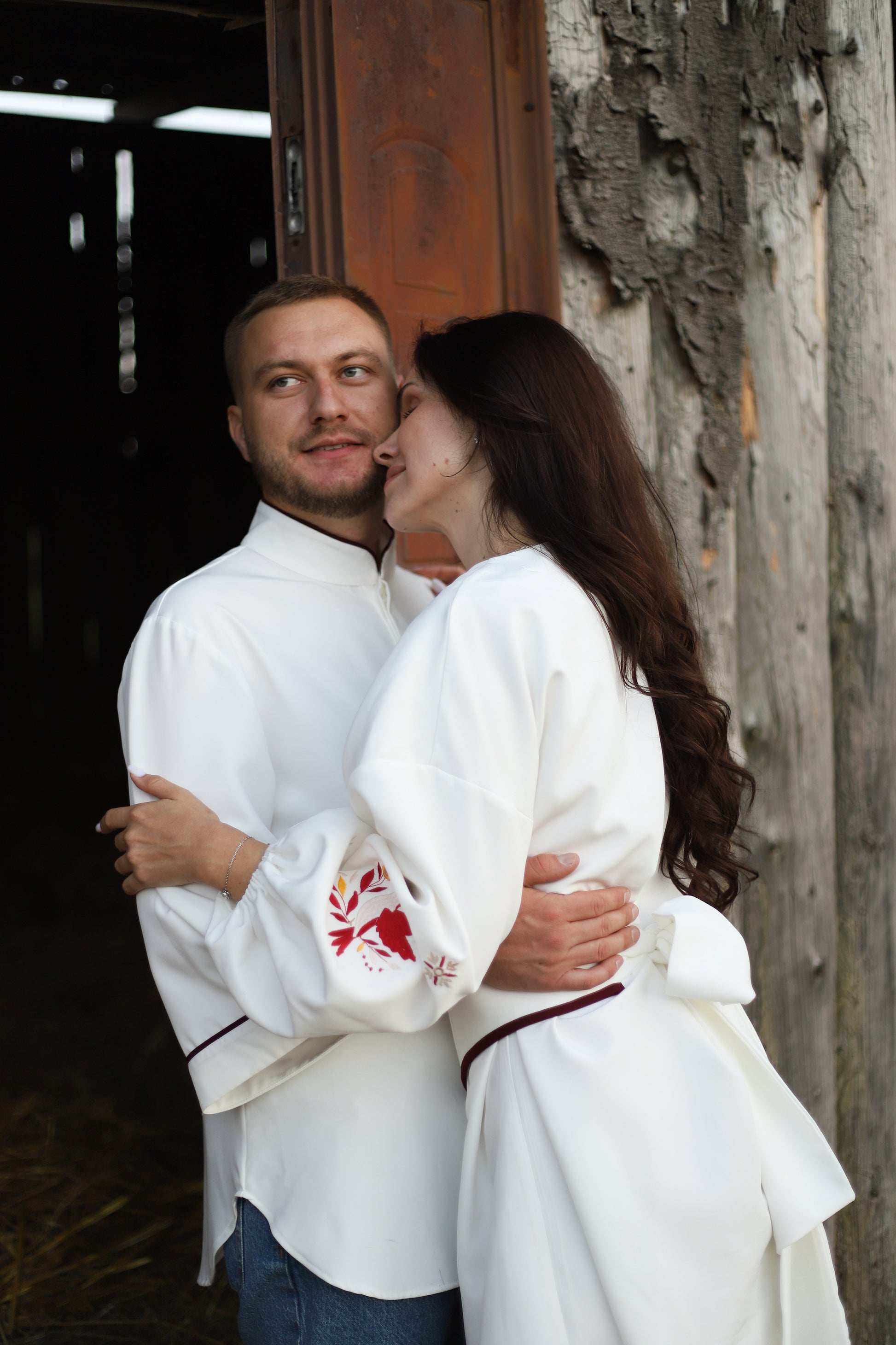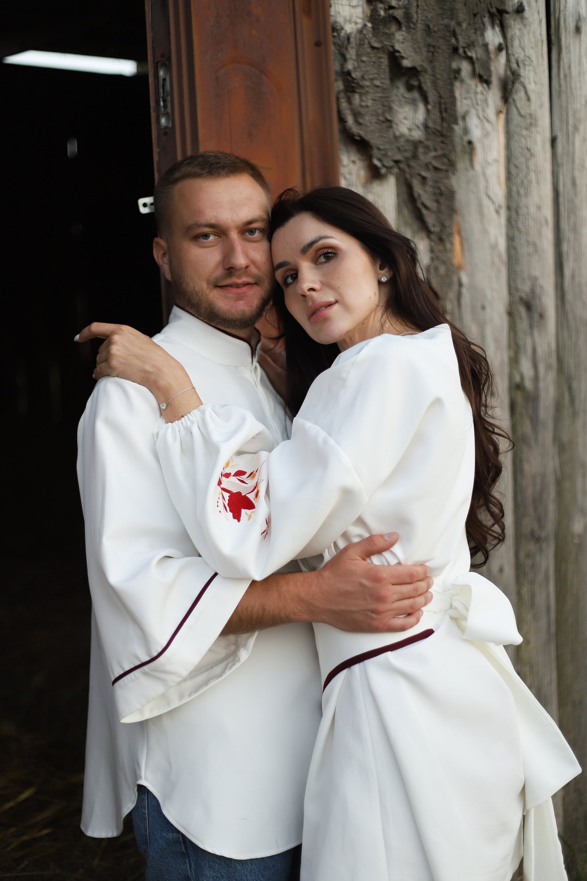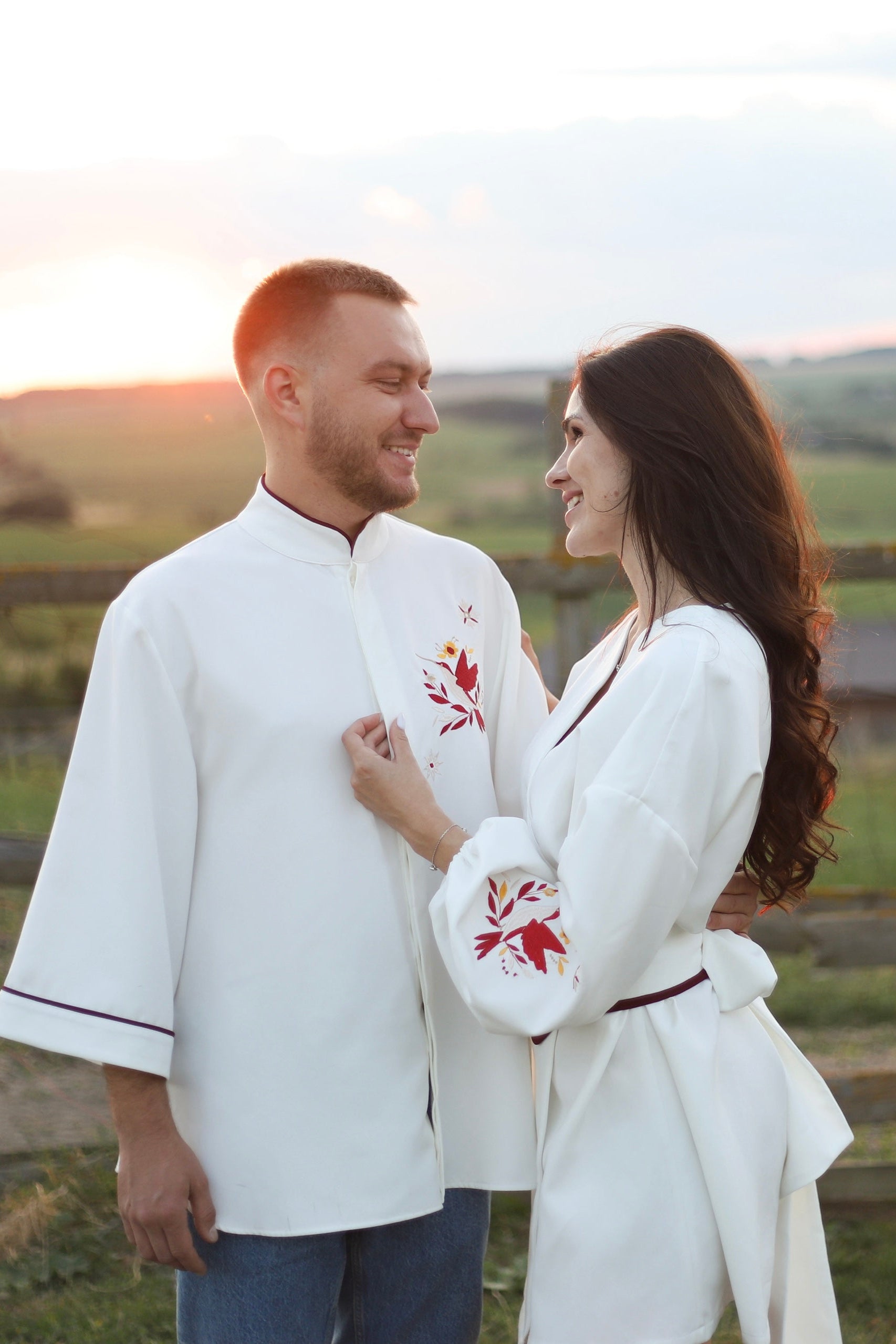 Цей комплект в етностилі створений для пар, які цінують національні символи, сучасну інтерпретацію вишивки та особливу атмосферу єдності. Вбрання прикрашене геометричним орнаментом, натхненним українською автентикою - кожен елемент вишивки несе глибокий зміст і силу оберегів.