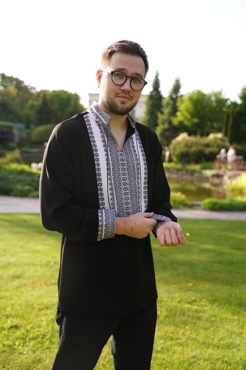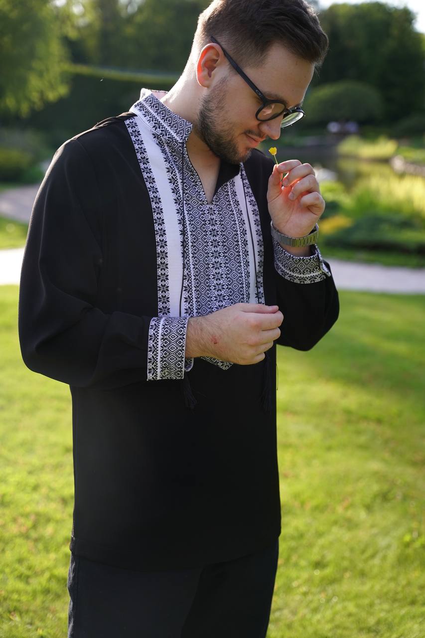:Чоловіча чорна вишиванка Спадок,біла вишивка