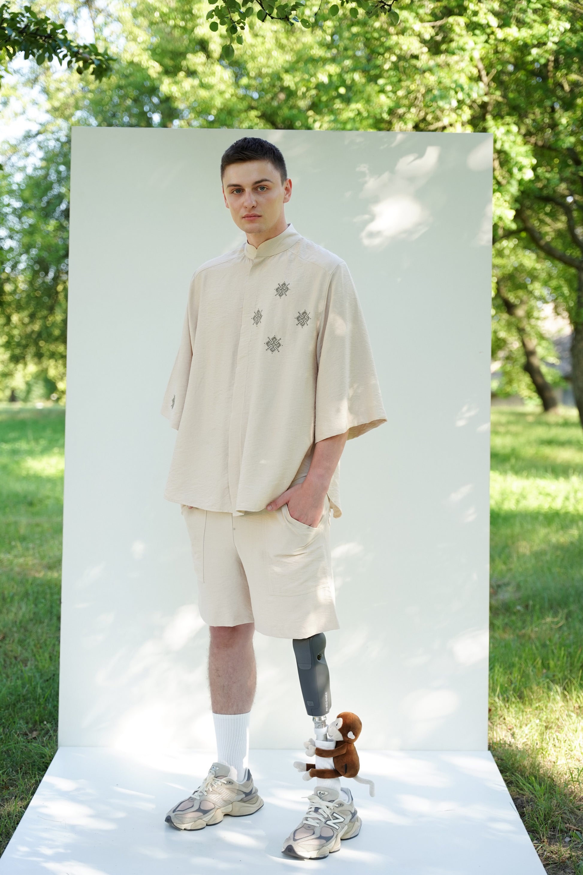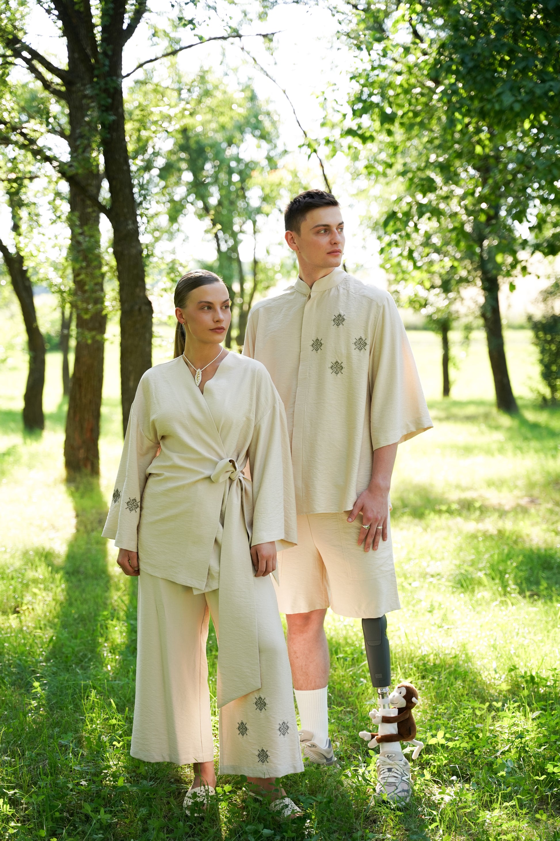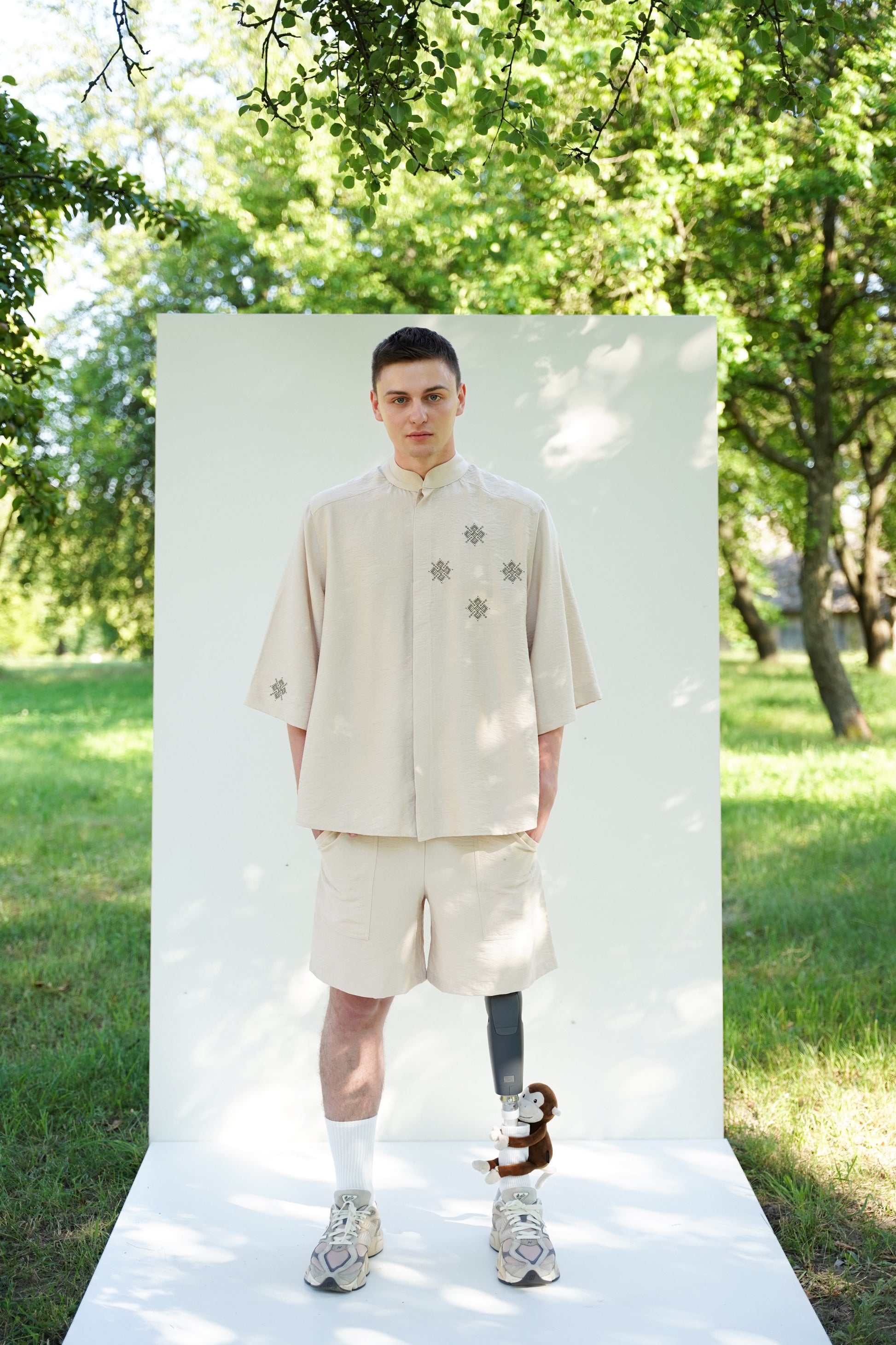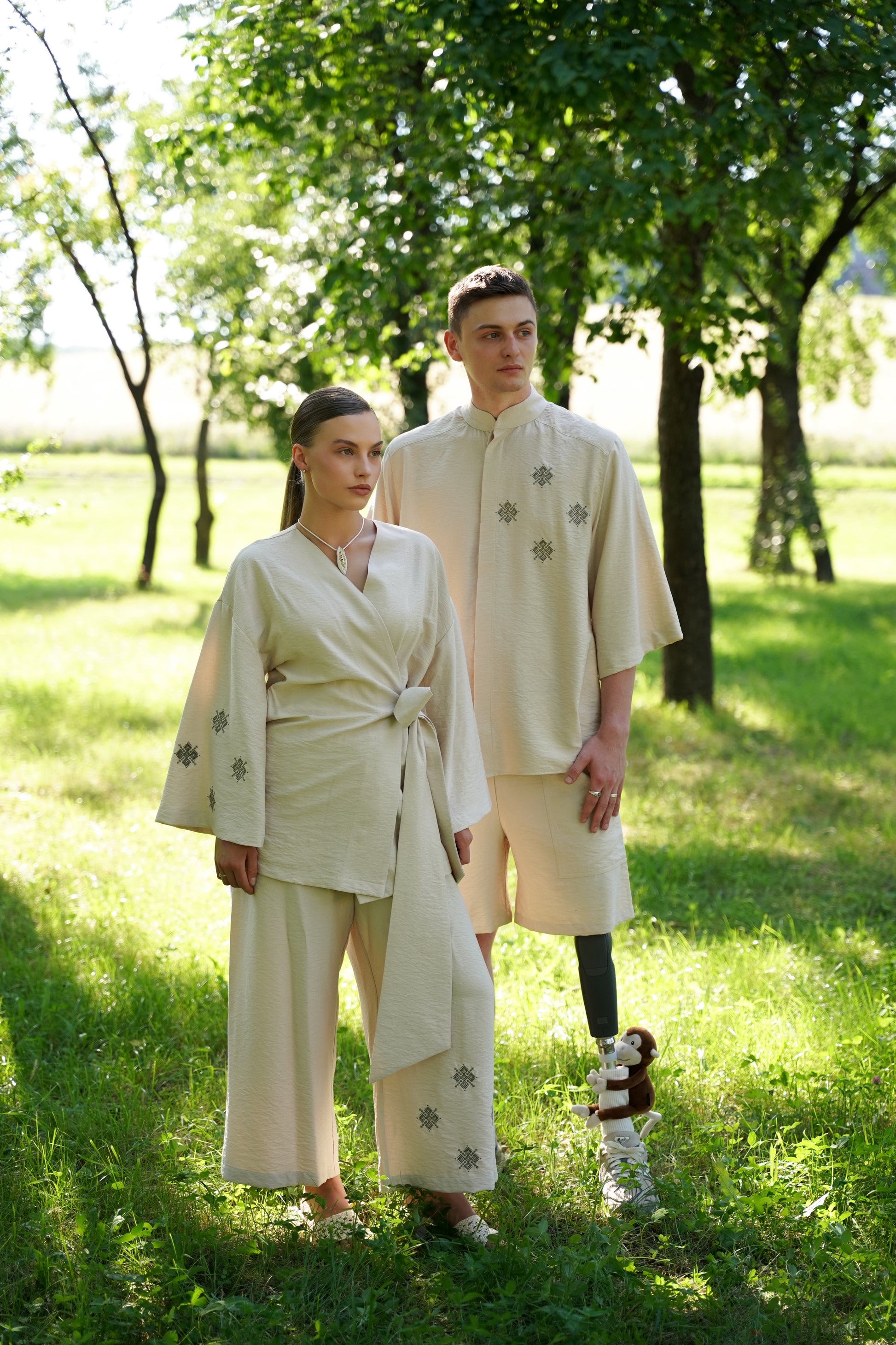 Це чоловіче кімоно поєднує сучасний крій із глибокими національними символами. Лаконічний силует, укорочений рукав і стоячий комір створюють виразний образ, який вирізняється стриманістю й естетикою. Вишиті елементи додають характеру та натякають на автентичність, не перевантажуючи образ.