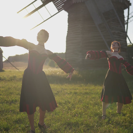Декоративна червона вишивка по всій довжині корсету - не просто оздоба, а візуальний символ сили й жіночої енергії. Обʼємні рукави з еластичними манжетами легко знімаються, що дозволяє трансформувати корсет під настрій - від класики до драматичного етно-луку.