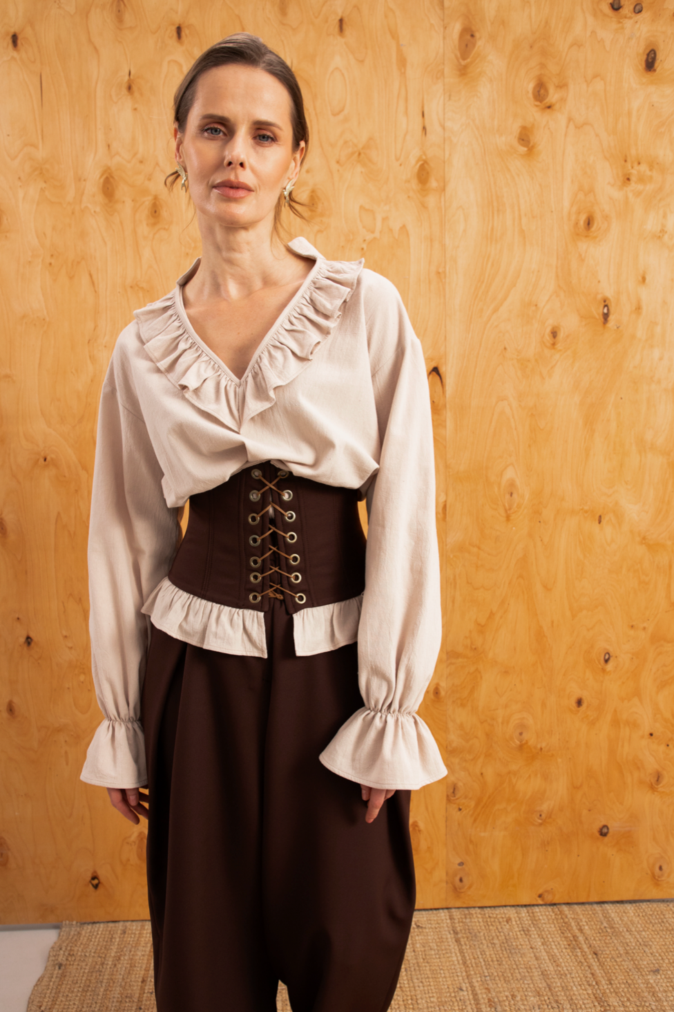 Ми передбачили зручне регулювання на люверсах, що дозволяє легко підлаштувати посадку під особливості вашої фігури для максимального комфорту. Елегантні рюші стають тим самим витонченим акцентом, який перетворює цей корсет на головну деталь як вечірнього, так і стильного повсякденного образу.