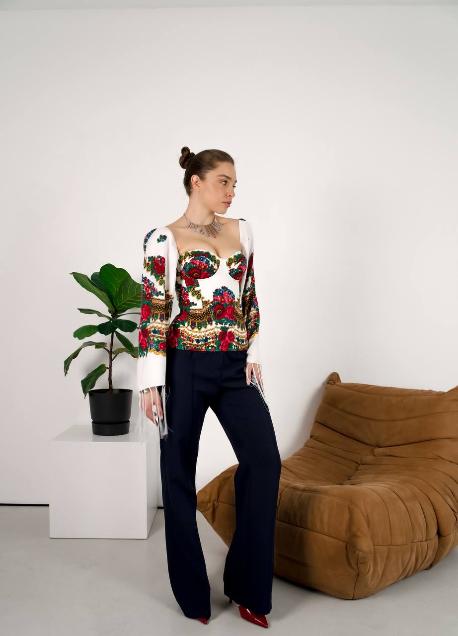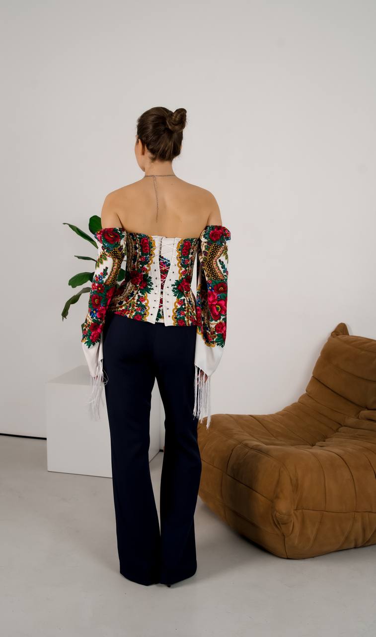 Авторський корсет із бавовни з етнодекором