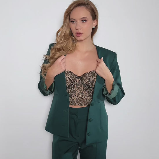 Його можна легко вписати як у вечірній лук із брюками чи спідницею, так і вдягнути під піджак або костюм - для сміливого, але збалансованого образу. Це про жіночність, яка говорить тихо, але впевнено.