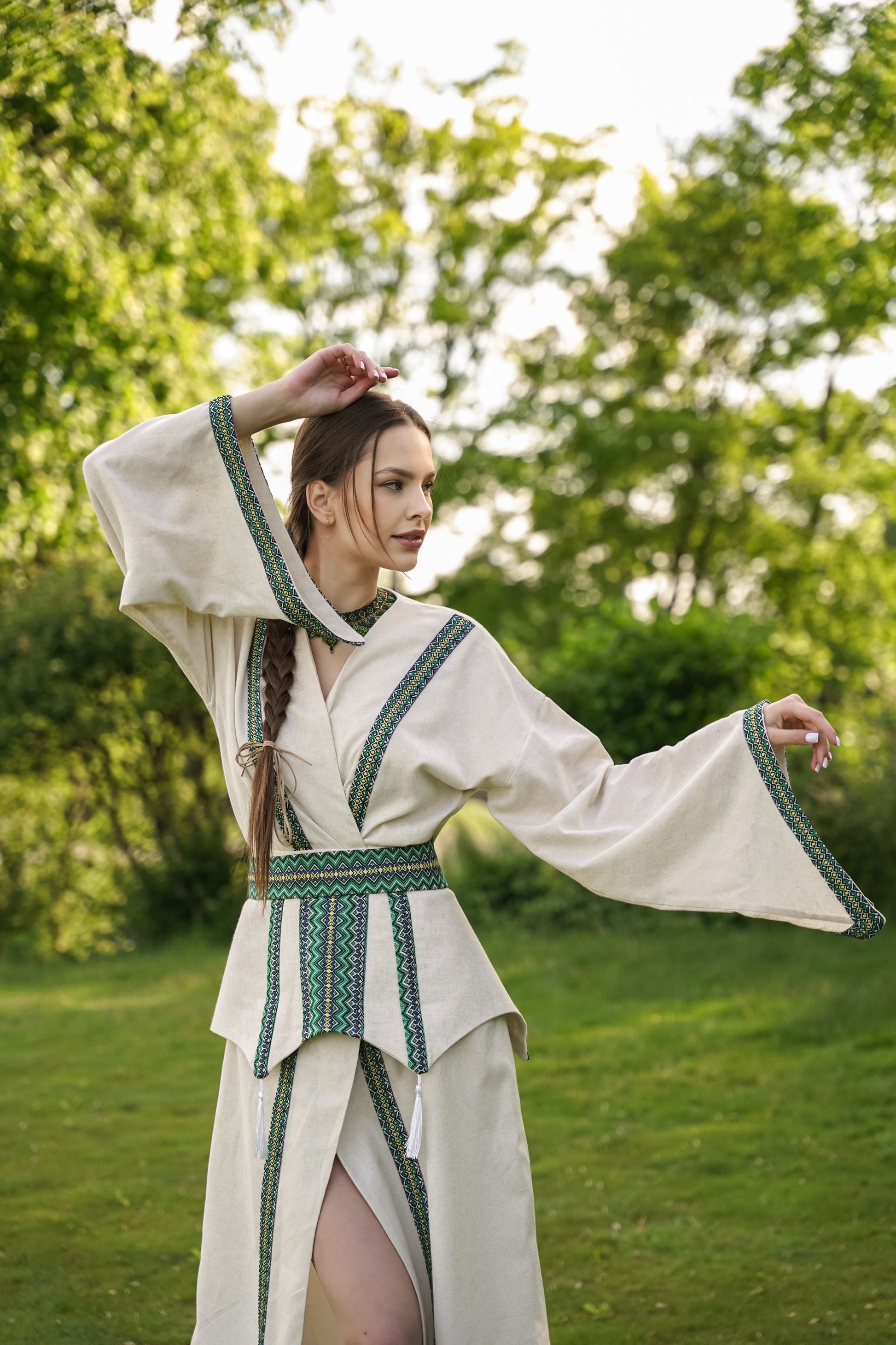 Образ Берегиня – жіноче лляне кімоно з вишивкою
