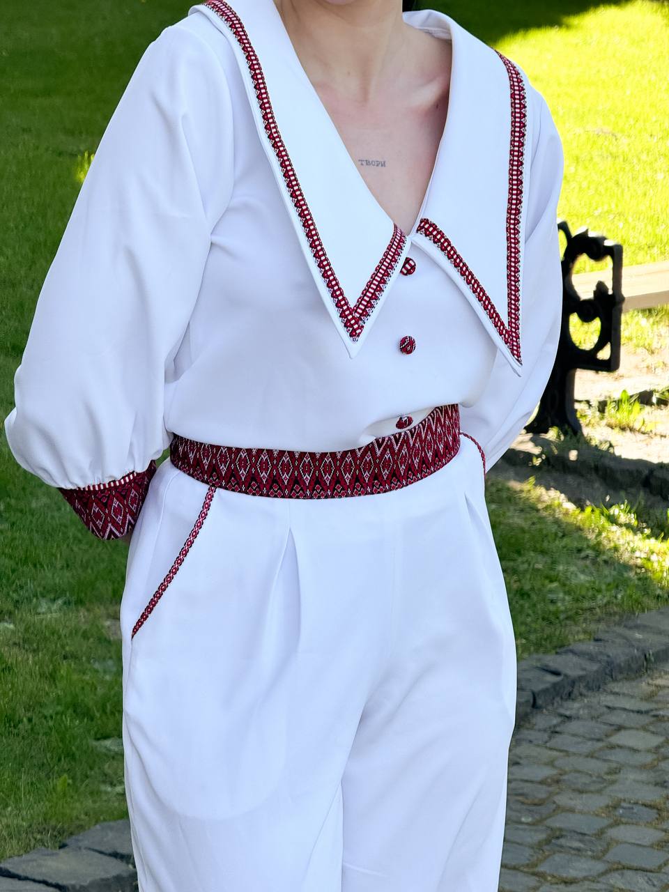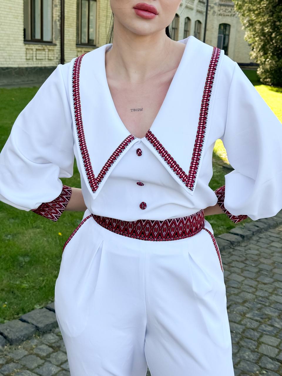 :Жіноча сорочка біла Лілея, червоний оранамент