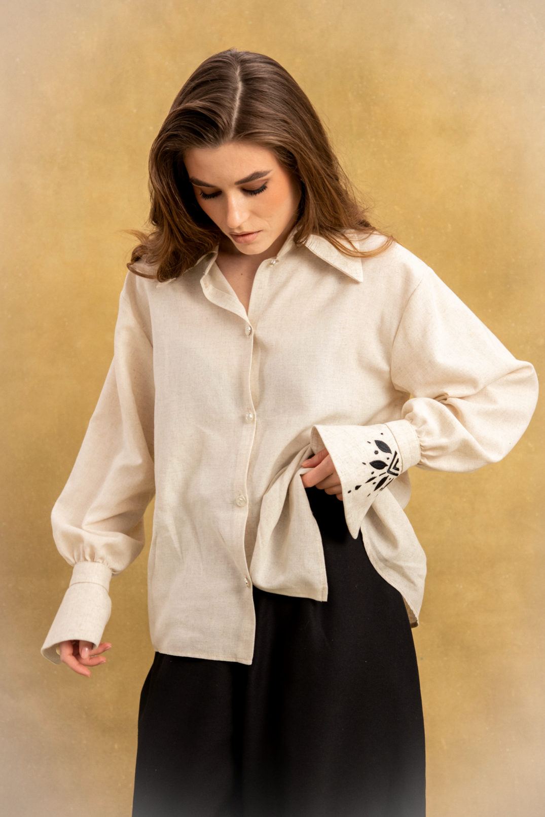 Лляна сорочка з вишивкою та авторськими ґудзиками: ніжність у деталях