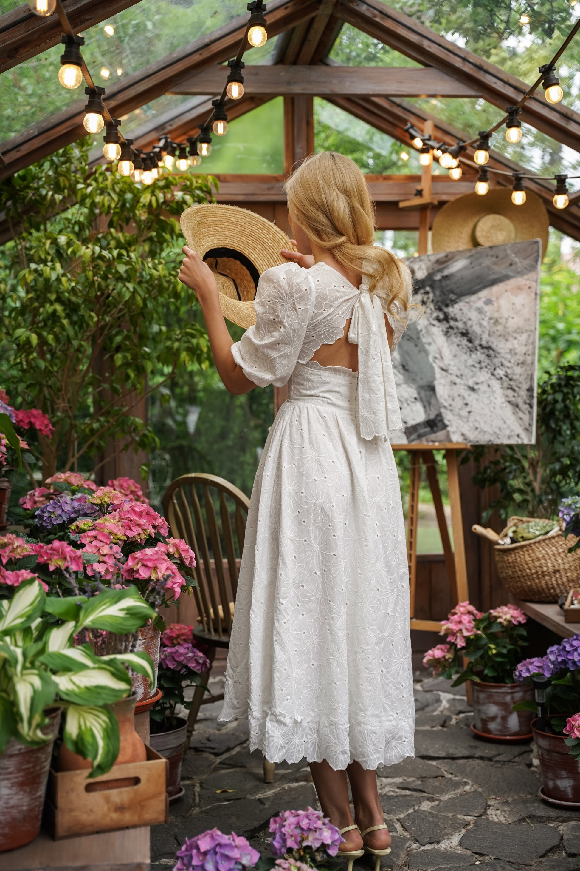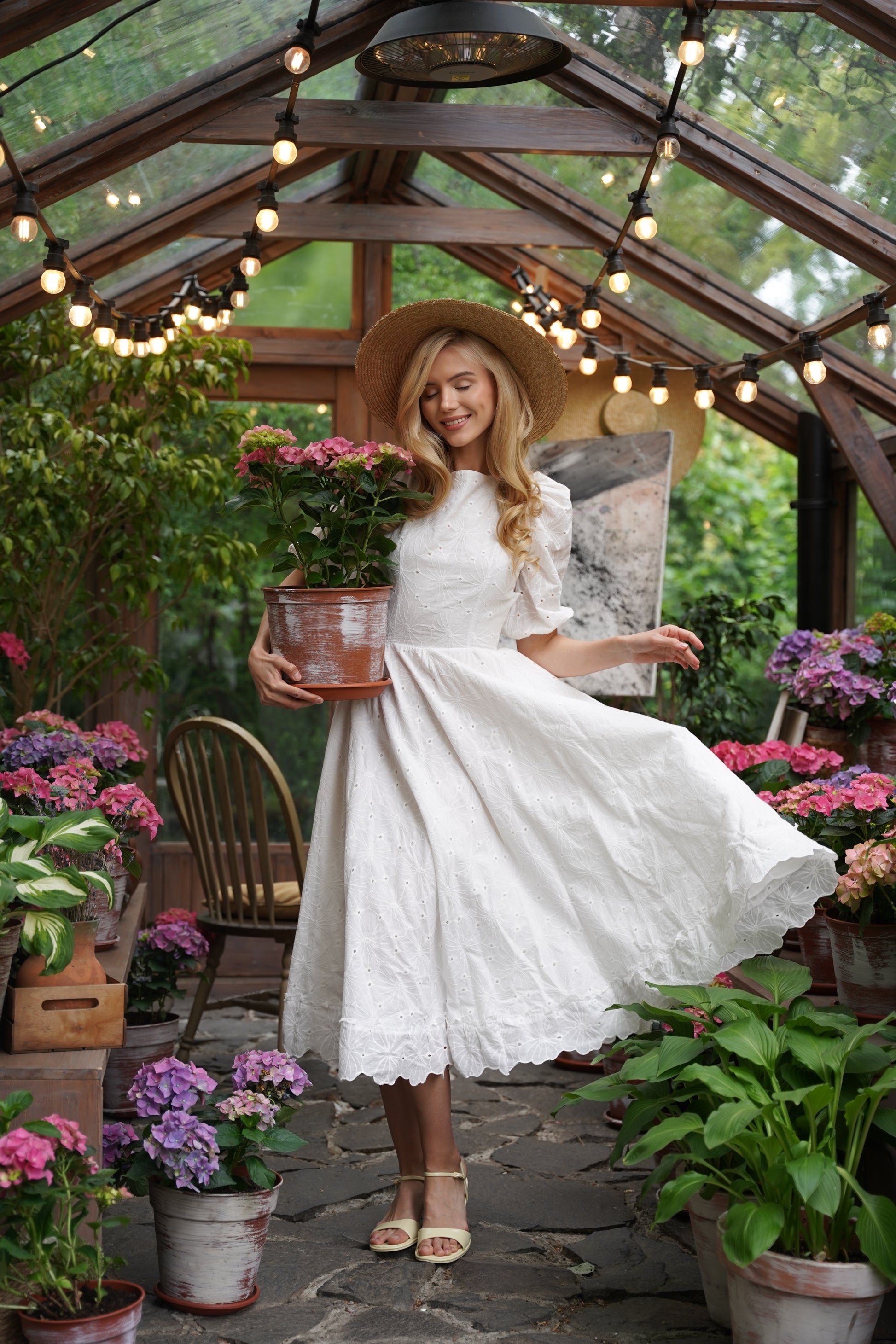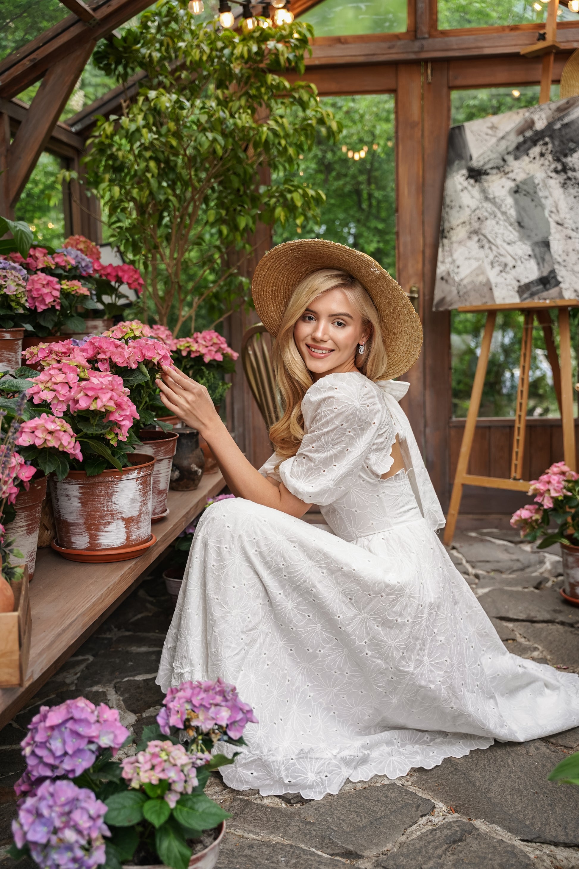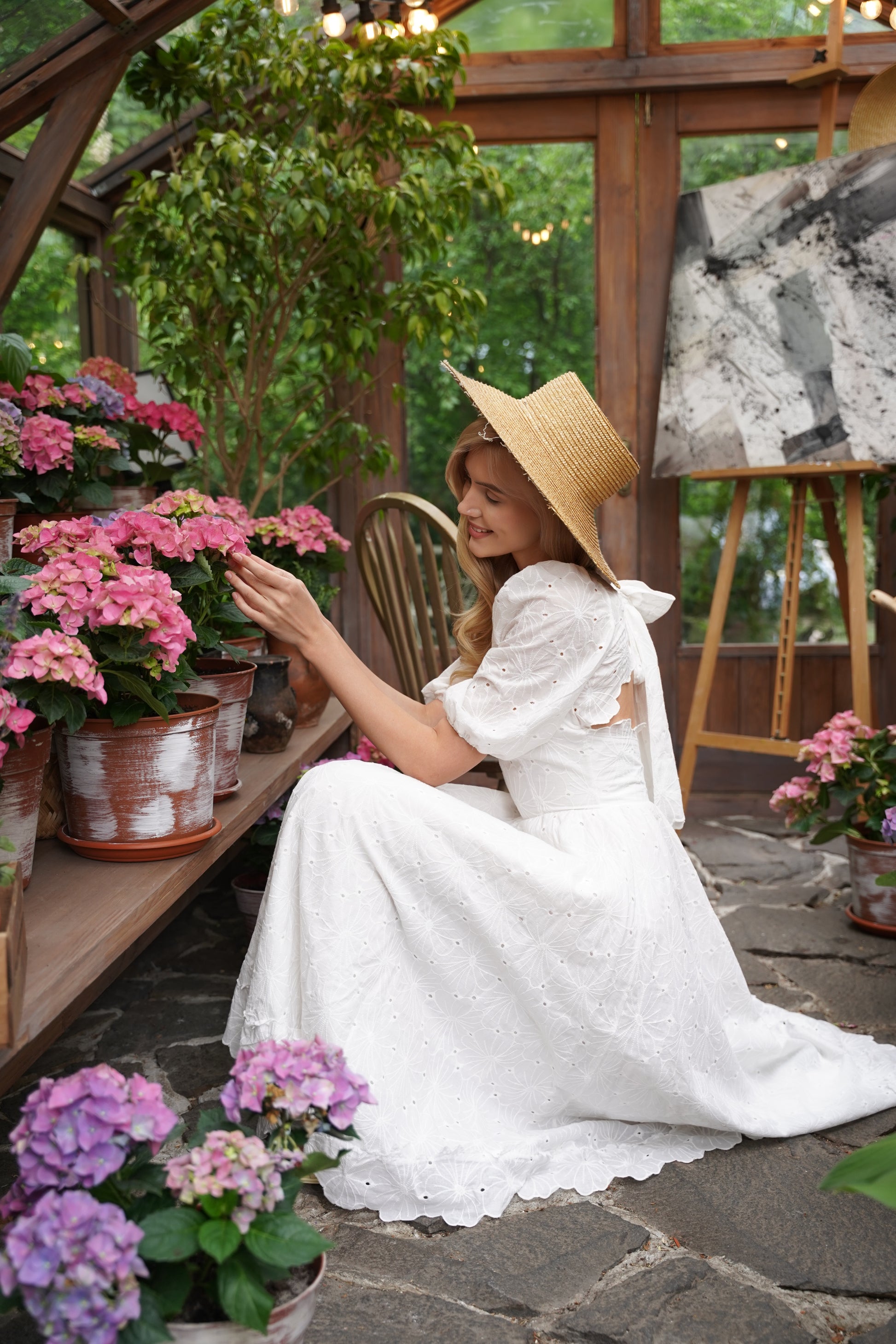 Ця сукня - уособлення жіночності, легкості й спокою. Виконана з натуральної бавовни з ніжною англійською вишивкою, вона ідеально підійде для літніх прогулянок, виїздів за місто або особливих моментів у колі близьких.