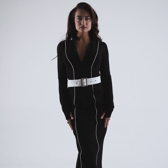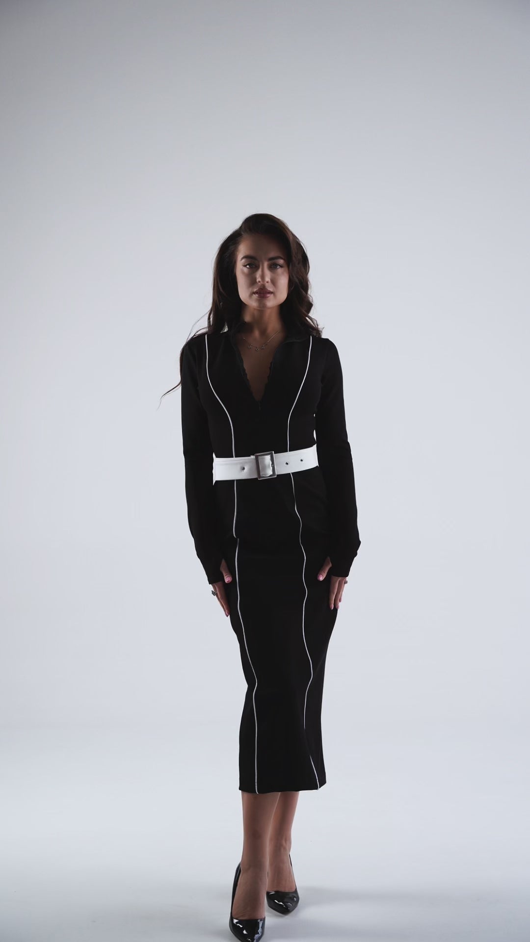 Модель ідеальна для особливих подій: вечірки, офіційні зустрічі чи стильні виходи. Завдяки поєднанню класичного крою та сучасного дизайну, сукня створює ефект «менше слів — більше присутності». Гарно комбінується з класичними туфлями чи чоботами на підборах.